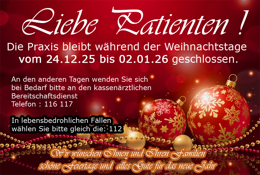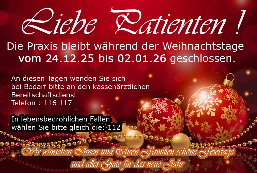 Bitte rufen Sie daher unbedingt an, bevor Sie unsere Praxis besuchen !